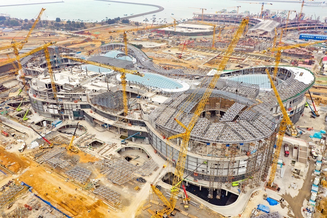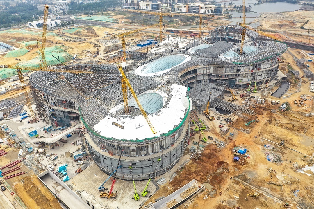 “海口国际免税城项目是2019年3月18日海南省集中开工的重点项目之一。该项目涵盖免税商业、有税商业、办公、酒店及人才社区等地块建设,目前一期开发建设有地块二、三、五,其中主要建设的海口国际免税城地块五已进行到室内外装修及机电施工阶段。”中免(海口)投资发展有限公司党支部书记鞠凯勇说。